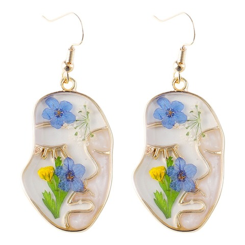 Handgemachte Tropf kleber getrocknete Blumen ohrringe Kreative Blumen kanten legierung getrocknete Blumen ohrringe DIY Basteln für Damen schmuck