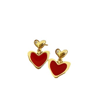 Pendientes colgantes con forma de corazón y agujero, pendientes de corazón de amor rojo con personalidad, pendientes de goteo de aceite, novedad de 2024