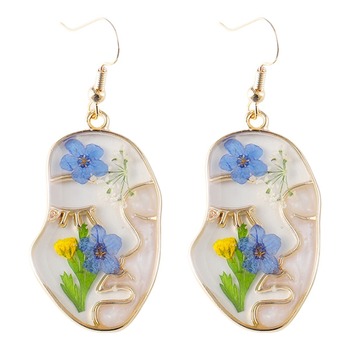 Pendientes personalizados exagerados abstractos pendientes de flores secas faciales maquillaje facial creativo flor eterna gota pegamento joyería