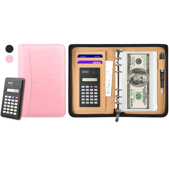 Raccoglitore di bilancio con buste con cerniera, buste per contanti per il Budget di A6 2025 di pianificazione Budget in pelle PU con calcolatrice buste